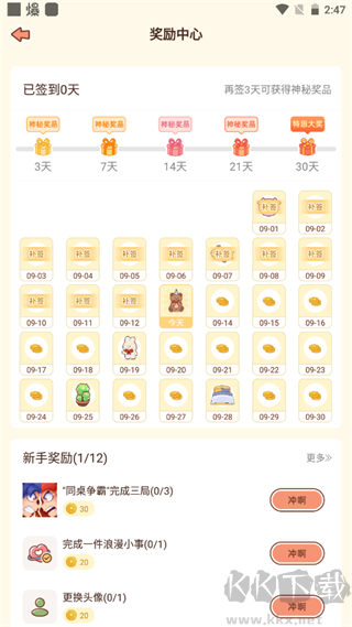 5、点击“奖励中心”,进行每日的签到,并完成任务,可以获取奖励哦