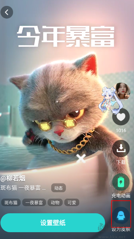 3、选择一款动态壁纸,点击设为皮肤即可。
