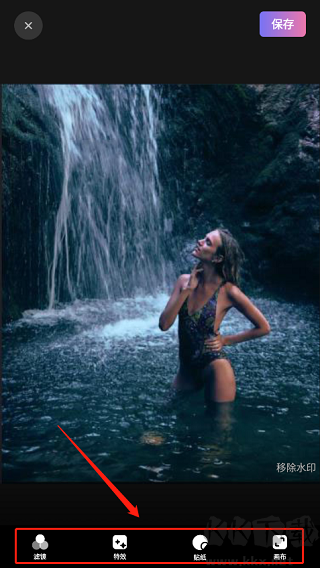 5、图片修改完毕后,轻触右上方保存按钮即可,你可将图片快速传送至常用社交平台。