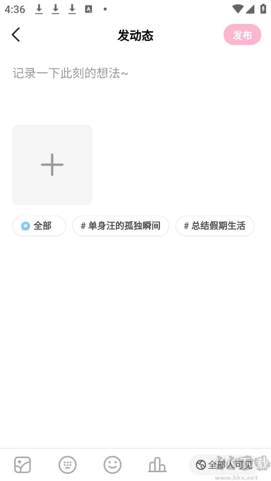 3、在编辑动态界面,输入文字内容,还可添加图片或视频素材。