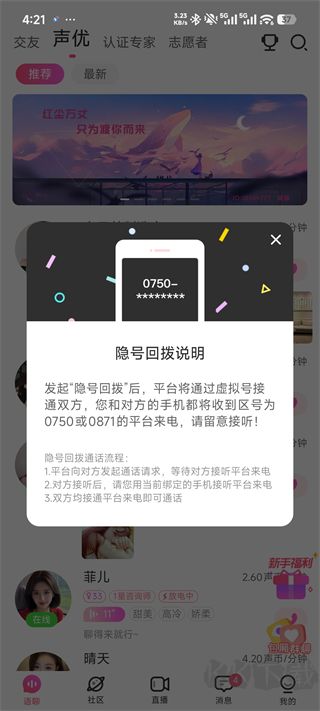 5、汇聚各类音色出众的小哥哥小姐姐,甜美、低沉、温柔、磁性……满足声控用户对声音审美的多样化偏好。