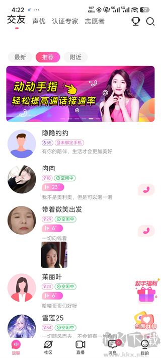 3、首页智能推荐热门语音直播间,随时加入围观,聆听主播精彩分享或趣味互动。