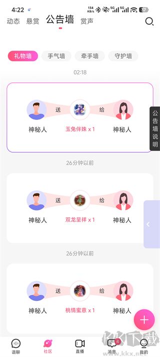 发布示爱悬赏收获祝福,全屏表白让你闪耀全场。