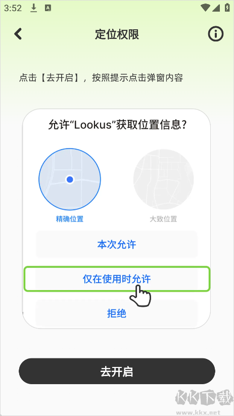 1、打开Lookus应用后,进入【设置】页面,找到【权限】选项。