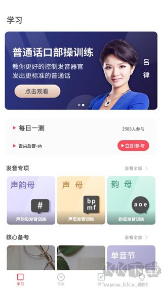 支持对声母、韵母、声调、音变、词语朗读、短文诵读、命题说话及模拟测试等环节进行录音练习,并可与标准发音实时对比,帮助考生精准识别发音问题,从而探索更高效、更有针对性的学习路径。