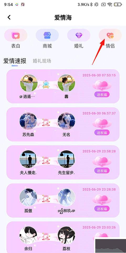 3、有对象的话即会展示在下方的爱情海,没有的话需要先去表白哦。