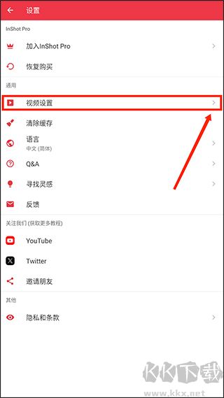 2、进入设置页面后,找到“视频设置”选项并点击;