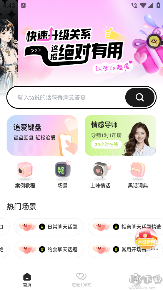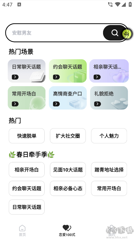 2、汇集大量实用聊天技巧,帮助用户快速找到合适的话题切入点,轻松打破沉默,迅速拉近彼此距离。
