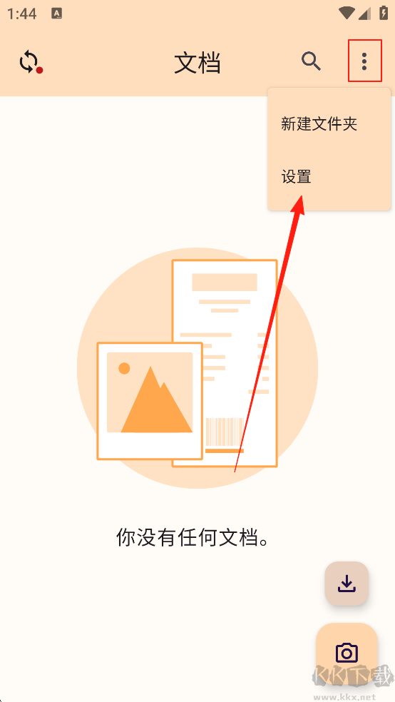 1、打开软件,点击右上角功能菜单,然后点击设置