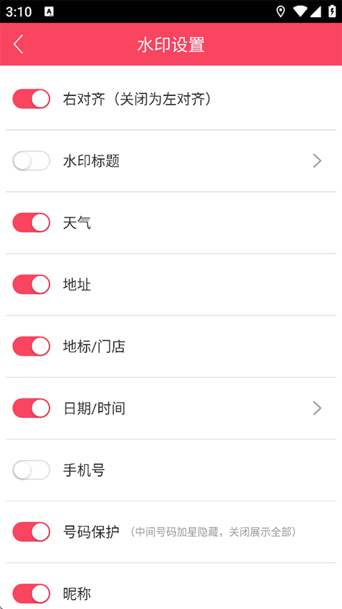 5、您可以自由调整需要显示/隐藏的水印项目;