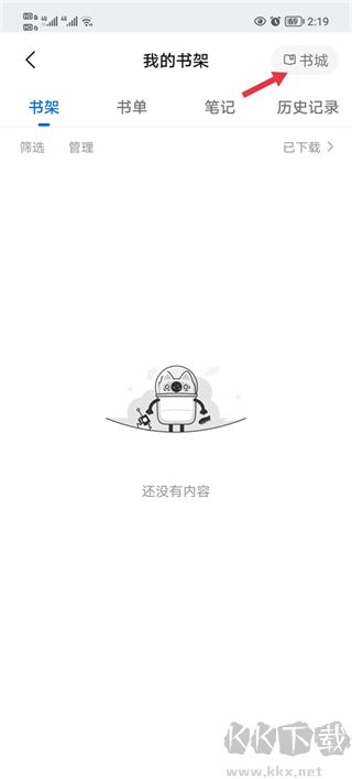 2、然后点击右上角的书城。