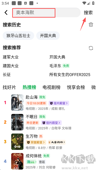 2、在搜索框中输入需要下载的视频,随后点击屏幕右上角的“搜索”。