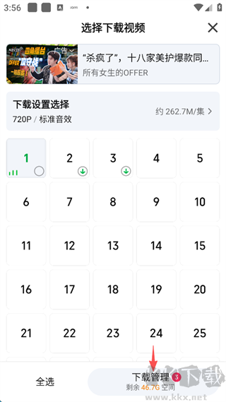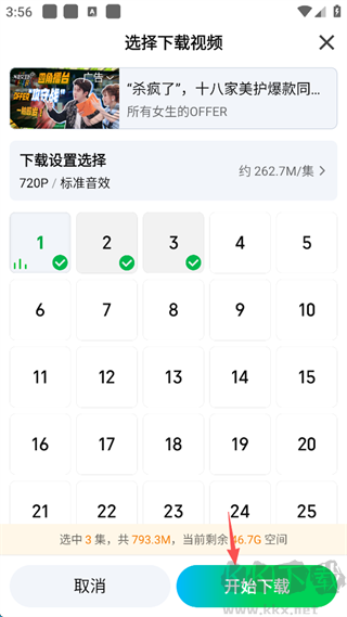 5、选择需要下载的集数,随后点击屏幕右下角的“开始下载”。
