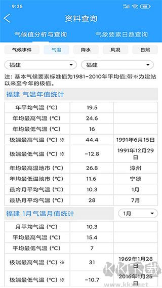 3、软件还支持气象资料查询,用户从中可获取到气候值分析与查询和气象要素日数查询等信息。