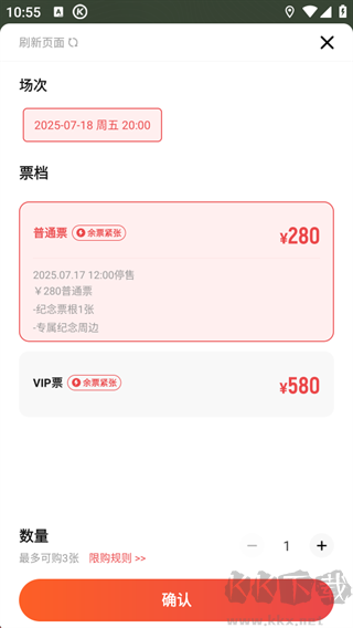 3、选择票档,点击确定