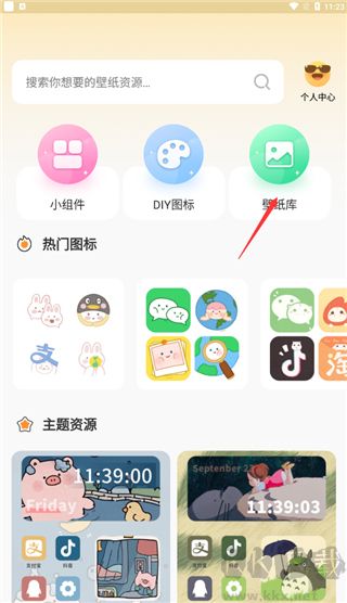 1、打开软件,点击上方的壁纸库选项;