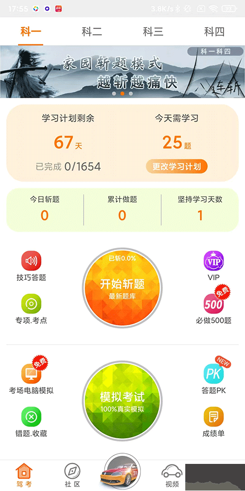 1、驾考首页提供了科目一、科目四刷题技巧、题库,以及科二科四的驾车教学视频;