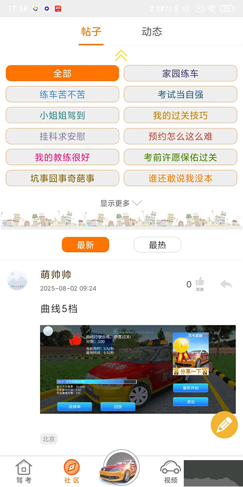 2、社区:众多车友发布学车、练车、考试帖子及动态,和千万车友一起学车;