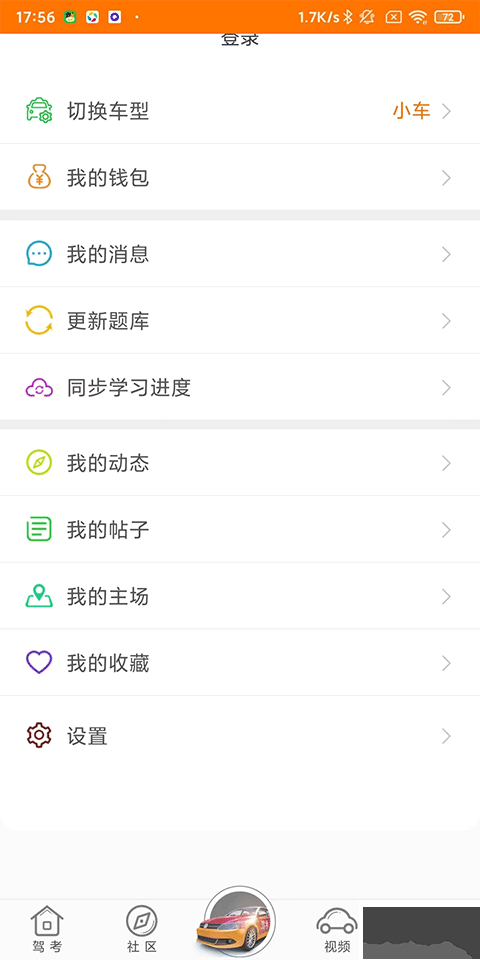 4、我的:提供切换车型、我的钱包、消息、更新题库、动态、收藏、帖子等服务入口。