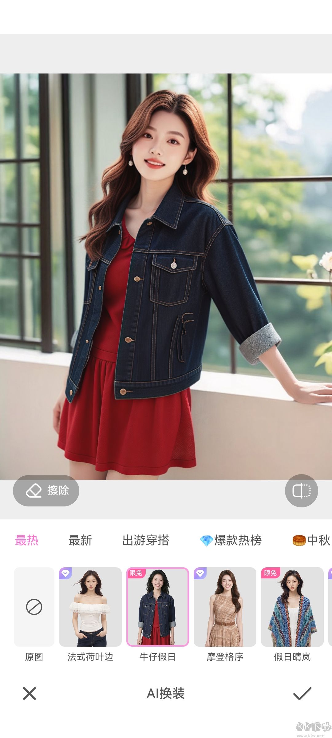 6、同样的选择需要换衣服的图片,在下方找到AI换装同样也可以。
