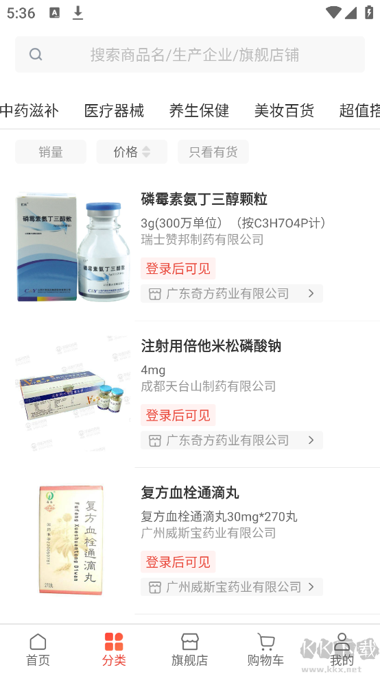 1、完成程序安装后,点击注册并登录,寻找需要购买的药品。