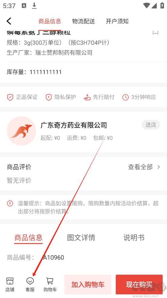 2、支付前,查看药品的基本介绍与说明。