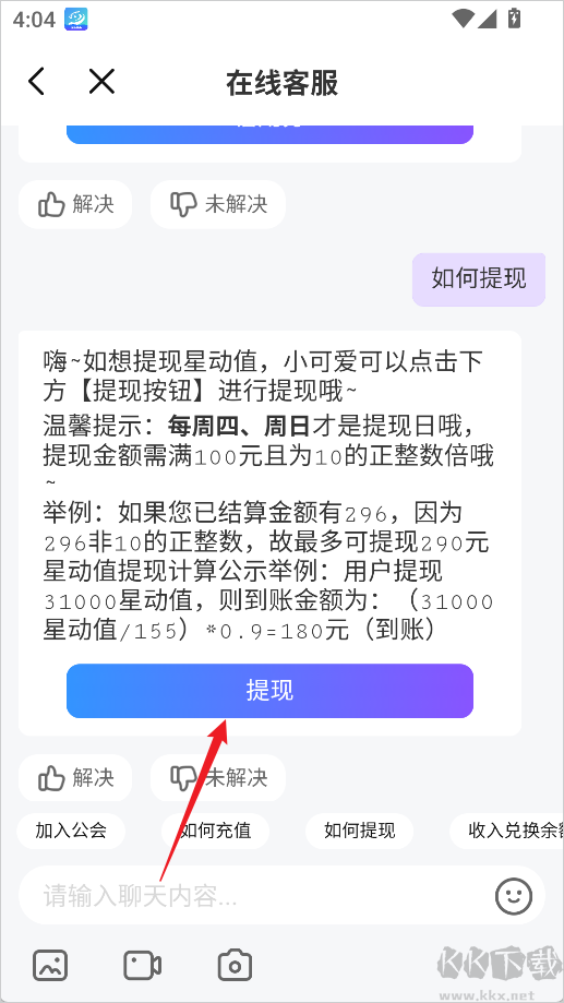 温馨提示:每周四、周日才是提现日哦,提现金额需满100元且为10的正整数倍哦。