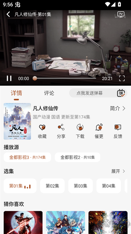 4、可以进入播放了,还拥有换源、下载、投屏、发弹幕等一系列功能。