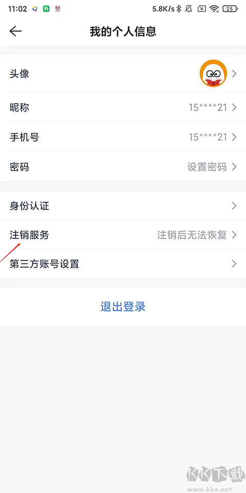 2、选择“注销服务”:在个人信息页面,找到并点击“注销服务”选项。这个选项通常与其他个人信息管理选项(如修改密码、绑定手机号等)放在一起。