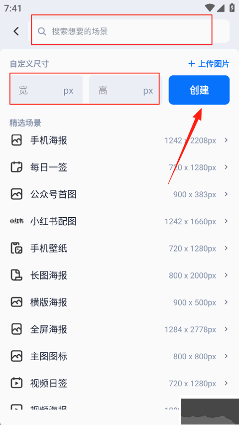 2、您可以在搜索栏搜索您想要的场景、或者自己创建,下方也提供了精选场景模板供用户使用;