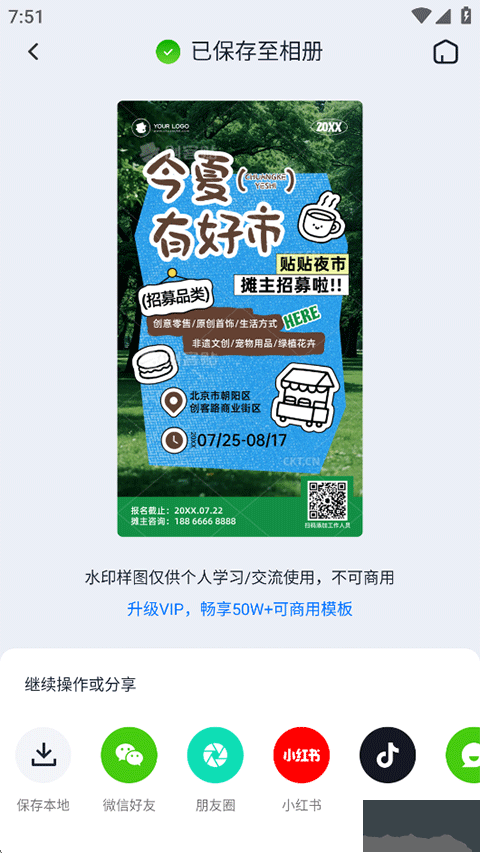 4、已保存至相册,创客射击APP也支持分享到微信、朋友圈、小红书以及抖音等各大平台。
