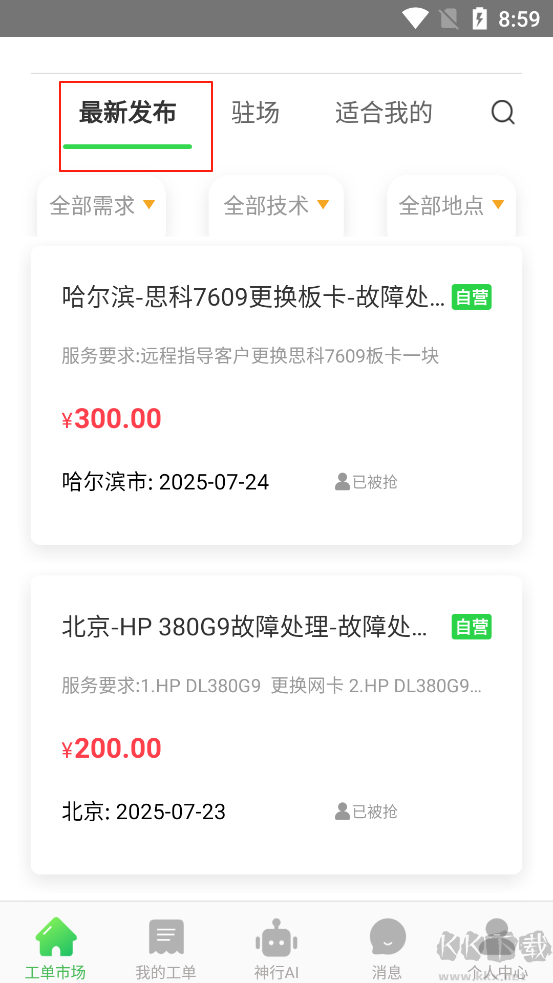 技术人员借助程序能够即时接收任务,确保在订单发布后及时获取工作机会。