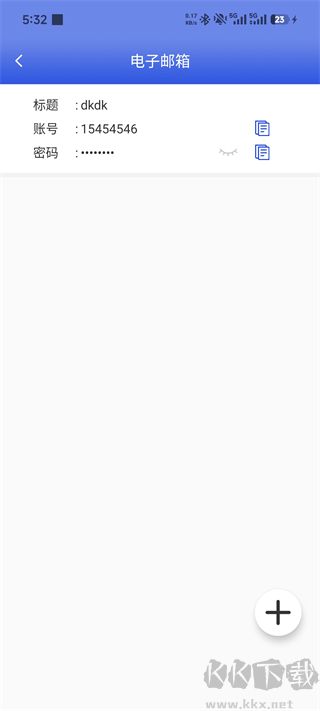 展示已收藏的信息,密码默认隐藏,支持复制账号/密码,可继续添加新记录。