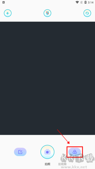 1、打开软件相机功能,点击右下角图示位置;