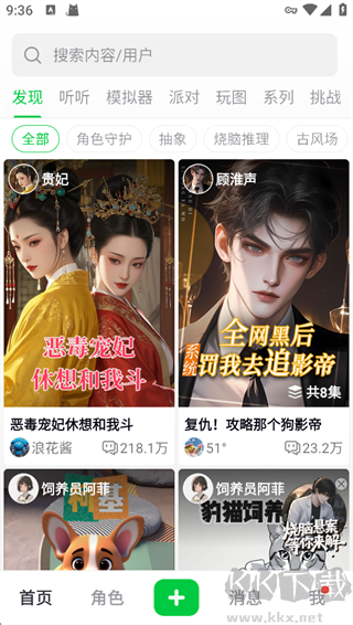 2、丰富多样的AI聊天室,多种风格随心挑选。从轻松日常到幻想冒险,从情感倾诉到知识探讨,不同主题满足各类兴趣需求,总有一款适合你。