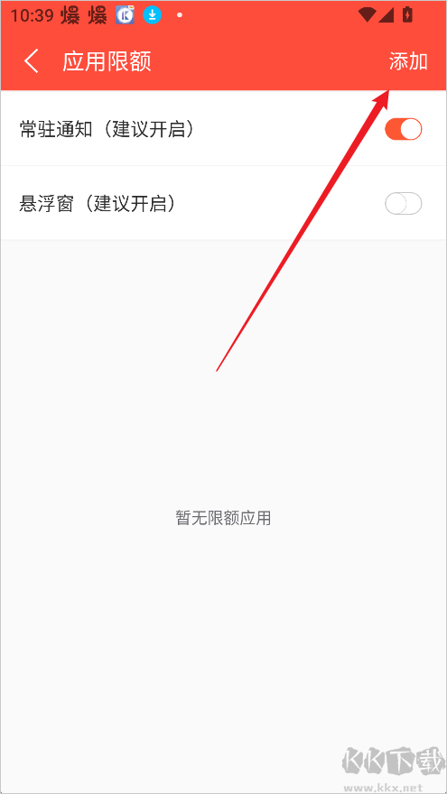 2、在应用限额界面中,点击右上角的添加按钮。