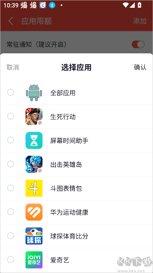 3、从应用列表里勾选你希望进行使用时间管控的目标应用。