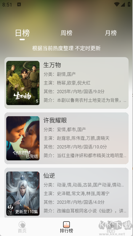 1、影视内容丰富多样,涵盖电影、电视剧、综艺节目、动漫等类型,每日持续更新,精彩不断。