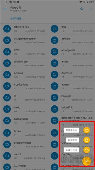 3、点击下方加号,支持新建文件夹,新建云链接。