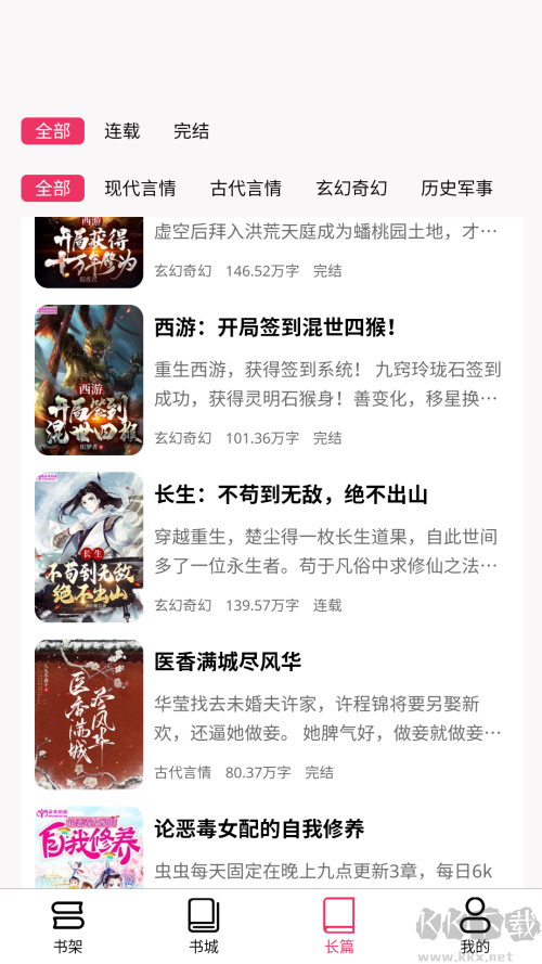 5、喜欢长篇类型小说可以在长篇类型里找。