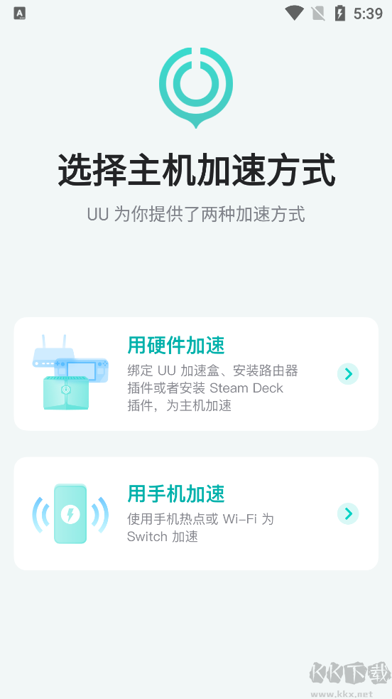 1、打开UU主机加速App选择主机加速方式,软件内提供了两种加速方式