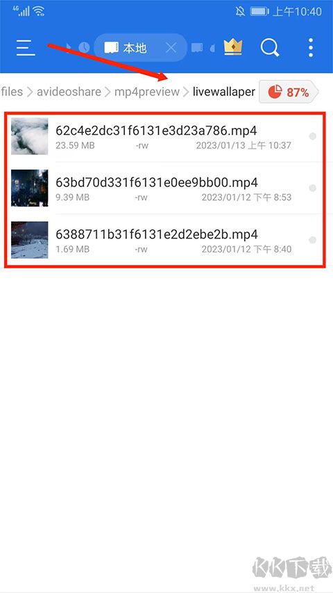 2、根据(storage-emulated-0-android-data-com.novv.resshare-files-avideoshare-mp4preview-livewallaper)路径进行查找,就可以看到下载好的壁纸文件了,
