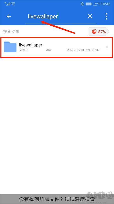 3、也可以在“搜索框”栏目,搜索“livewallaper”文件夹,同样可以看到下载好的彩蛋视频壁纸原文件内容了。