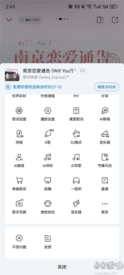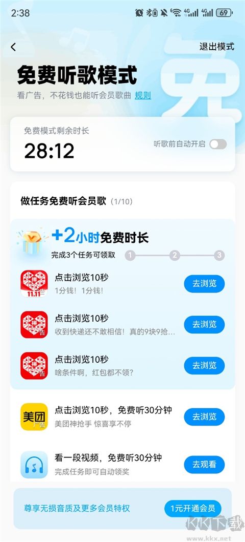 1、用户可以通过看广告来获取免费听歌时长;