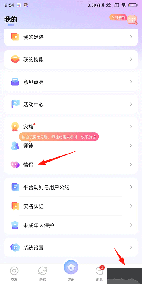 2、再点击右上角的情侣。