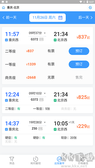 1、差旅行程规划:出发前可查询早班车次,快速比对发车时间与票价,有效节省通勤时间。