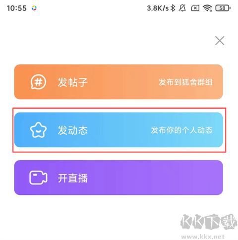 2、选择【发动态】;