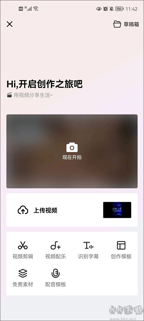 1、点击主页的【发视频】按钮,点击视频剪辑