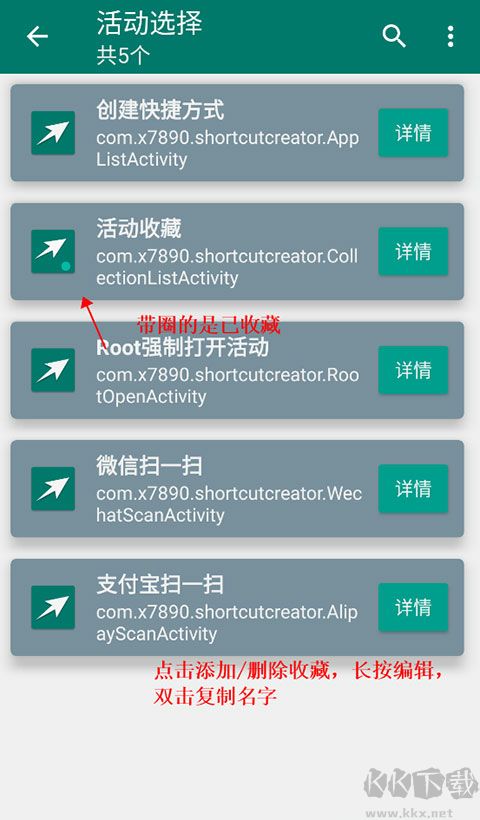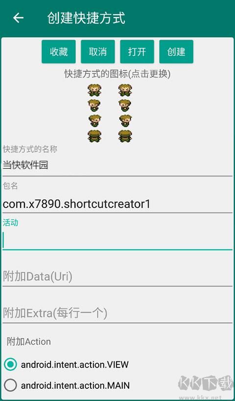 5、在详情界面,可以自定义快捷方式的名称、包名以及活动内容,操作简单方便。