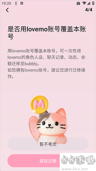 2、接着就可以进行使用,当然如果你是Lovemo的老用户,Bubbly app会提醒你进行账号信息的迁移